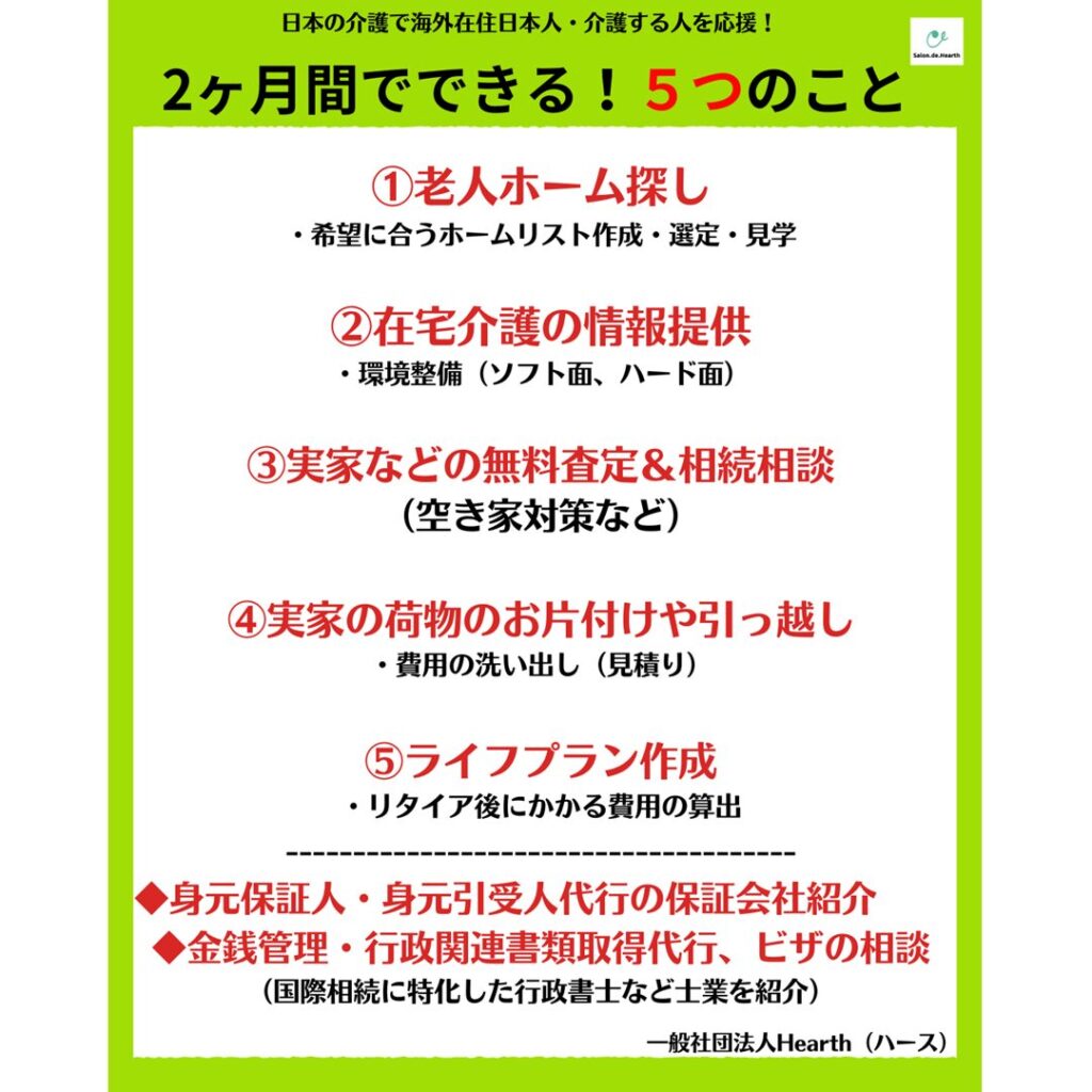 サロンドハースでは、海外在住日本人や遠隔介護をしている方を対象に、皆様の「困った!」をワンストップで解決に導きます。